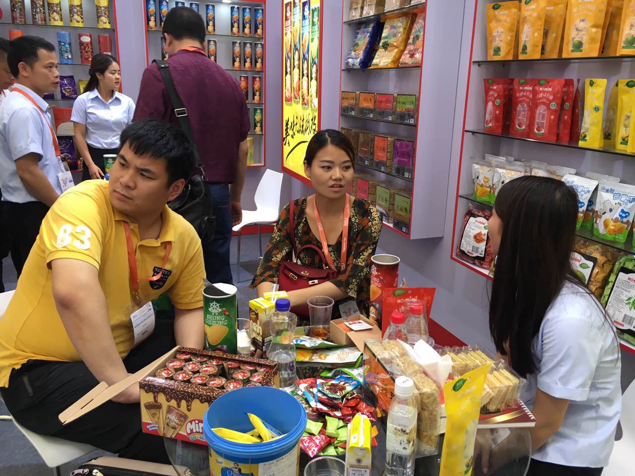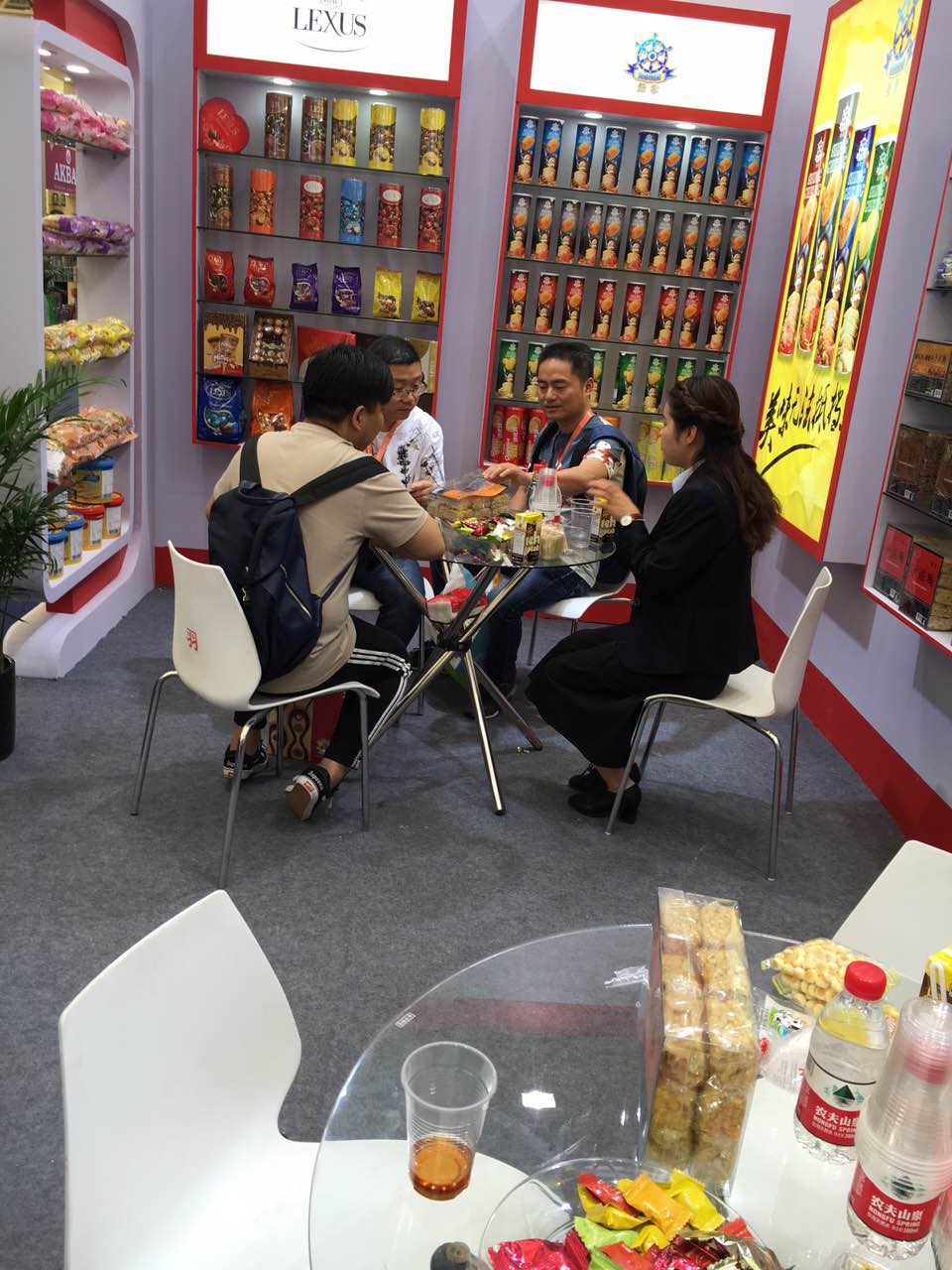 展會第一天,一德路最大批發商謝總,張總、胖東來、7-11采購等新老朋友都來到了展位參觀、洽談。